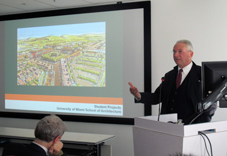 Peking University, Mar. 20, 2014: On March 14, Registered Architect Denis Hector, Associate Professor and Acting Dean of the School of Architecture (SOA), University of Miami, visited College of Architecture and Landscape, PKU and gave a lecture titled “New Urbanism in United States–History, Development, and Future.” It also attracted designers from the industry besides teachers and students.