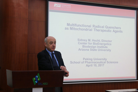 Peking University, May 5, 2017: Prof. Sidney M. Hecht visited the State Key Laboratory of Natural and Biomimetic Drugs (SKLNBD) on April 10 and gave a lecture there in the afternoon. Prof. Hecht is the Director of the Center for BioEnergetics in the Biodesign Institute at Arizona State University and an Associate Editor of the Journal of the American Chemical Society. His visit was at the invitation of Prof. Zhang Lihe, who is a Member of the Chinese Academy of Sciences.